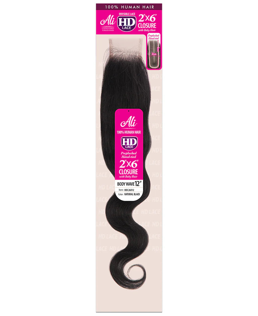 ALI UNPROCESSED HUMAN HAIR HD 2X6 LACE CLOSURE-BODY WAVE
